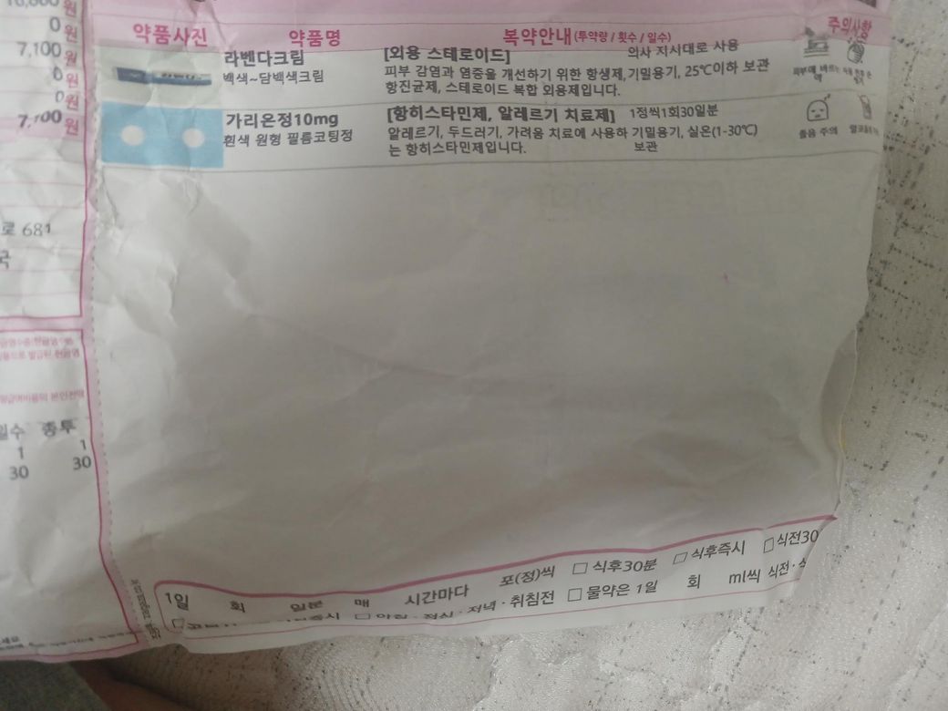 너무 가려워서 그냥 맨 왼쪽에 있는 알러지약은 하루 2알 먹엇습니다 이거 괜찮을까요?
