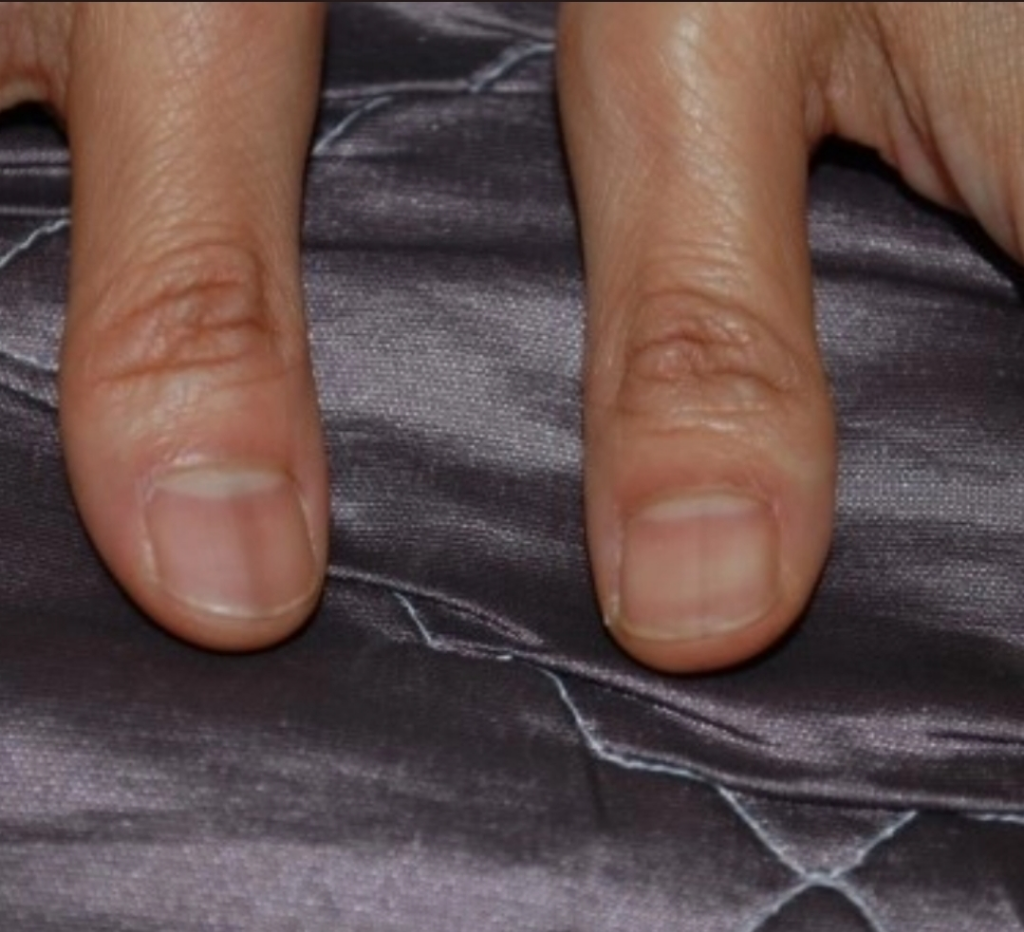 보통 체크해보라고 하시는 큐티클 및 근처 피부까지 색이 퍼져있는 손가락은 없습니다.