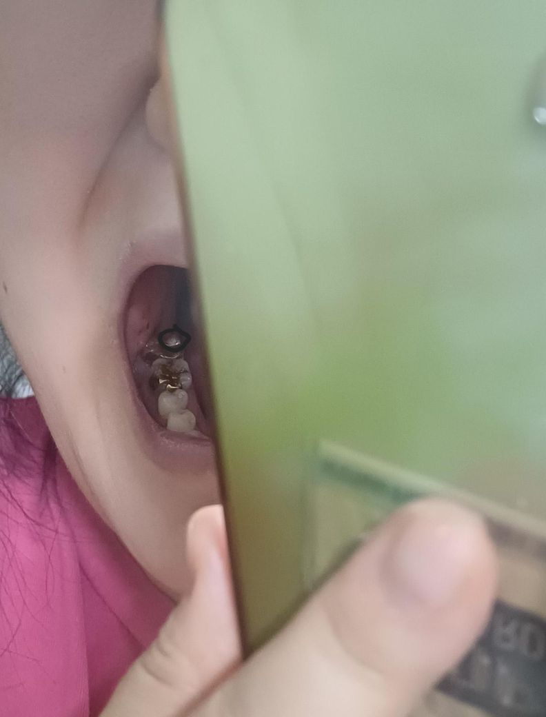 크라운에 구멍이 났네요 크라운 쓰다보면 마모되고 얇은 부분 구멍 뚫리기도 합니다 증상이 없다면 꼭 긴급하게 교체할 필요는 없습니다