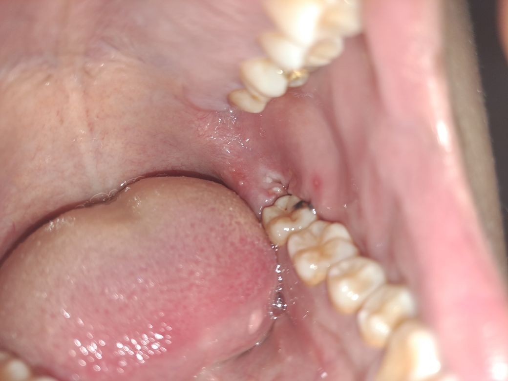 입에서 이상한 맛이 난다거나 하지는 않습니다마는 뭔가 찌르는듯한 고통이 있어 자다가 깨며, 뭔가 하얀것도 있는지라 비주얼상 의심스러워서 여쭈어 봅니다.