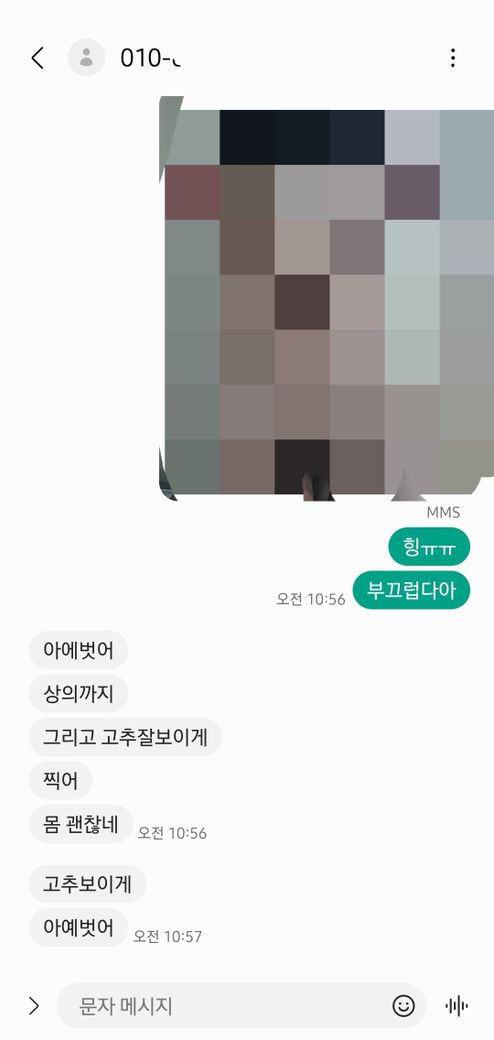근데 저가 먼저 보냈는데 걔는 안보네고 내사진에 불만가지고 다시 보내라는식으로 협박을 하는거에요;;