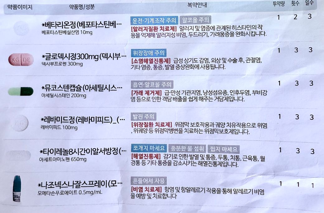 여러가지로 몸이 안 좋아 항생제, 항히스타민을