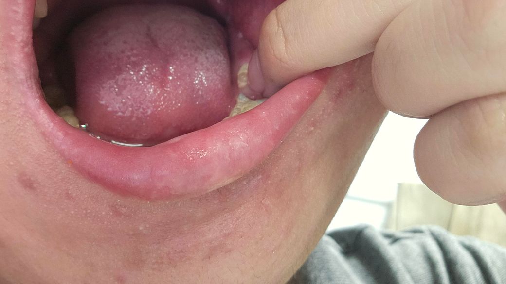 잇몸이 건조해서 그럴수도잇고 바이러스 감염일수도 있습니다. 약국에 가셔서 입술에 바르는 약을 구매 하시면될것같습니다.