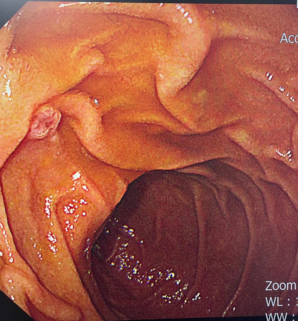 내시경 사진입니다 왼쪽 상단에 저 동그란 용종같은건 무엇인가요???