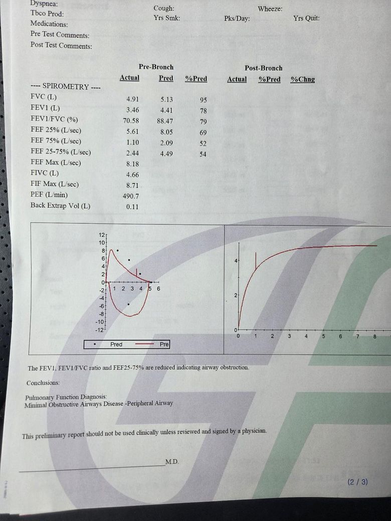 폐기능 검사랑 메타콜린 검사 받았는데 천식이나 copd일까요?