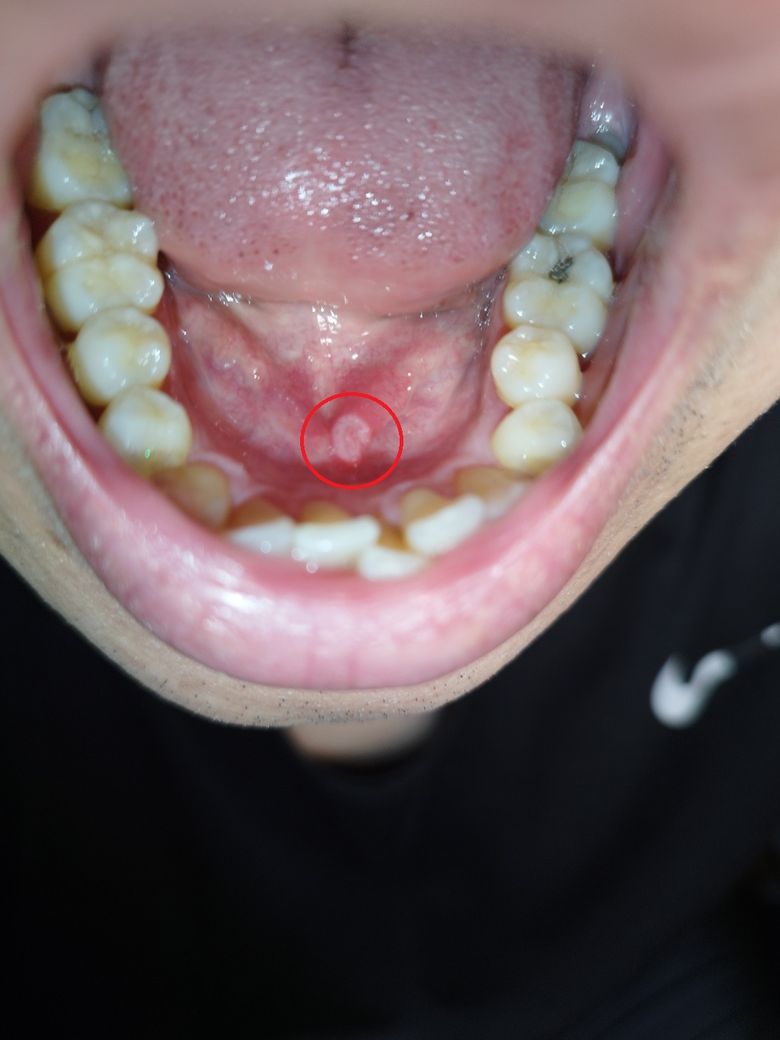 현재 사진상으로 구내염증상으로 보이며, 통증이 없는 경우 거의 나아가는 단계일 가능성이 높습니다. 만약 통증이 있거나 커지는 경우에는 치과를 방문하길 권합니다.