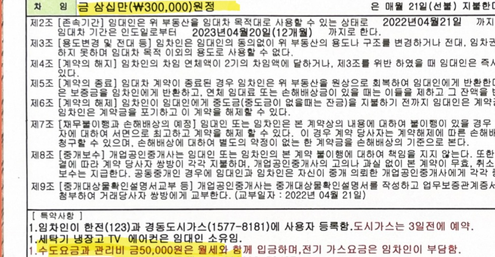 1. 관리비를 제외한 월세 30만을 기재합니다.