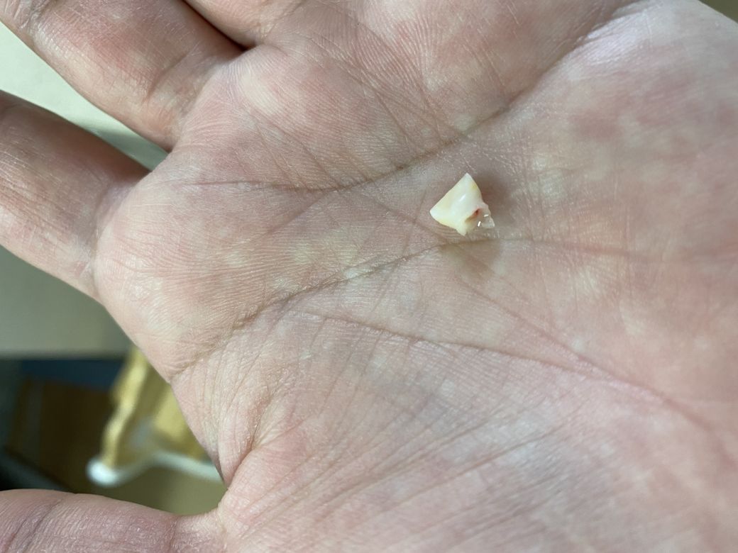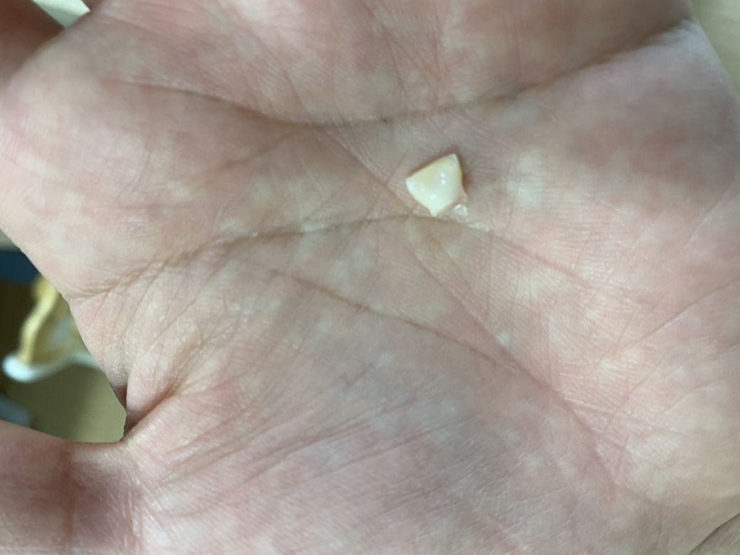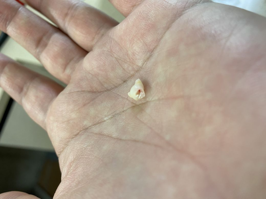 발치 후 잇몸에 하얀 이 뿌리가 남아있는것 같아보이네요