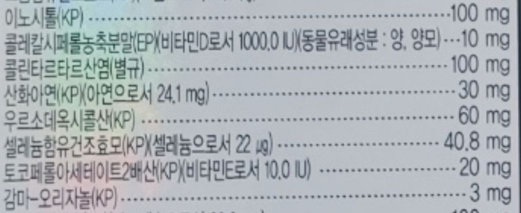 종합영양제 장기간 복용중입니다. 함량 봐주세요