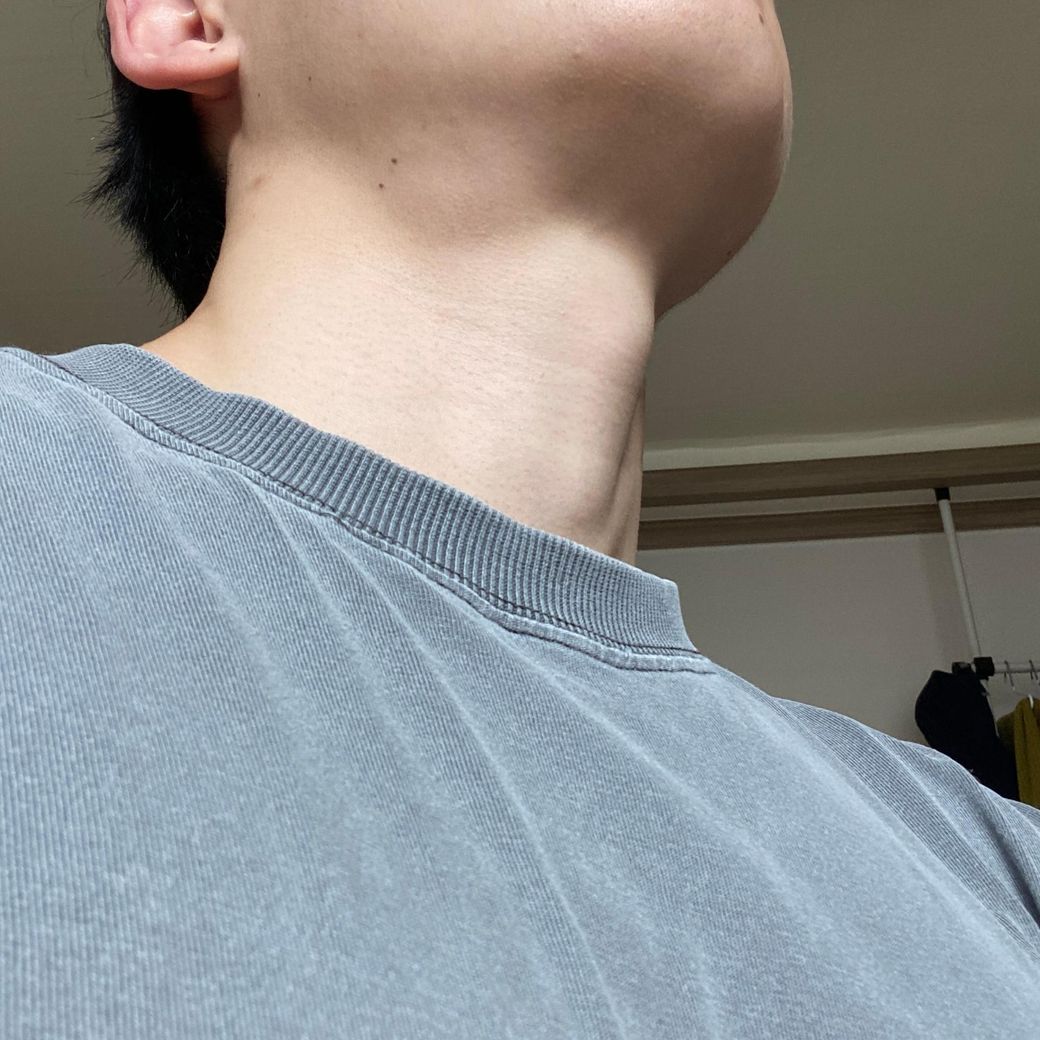 왼편 턱쪽에만 이런식으로 볼록하게 튀어나오고 뭔가 살짝 잡힙니다.