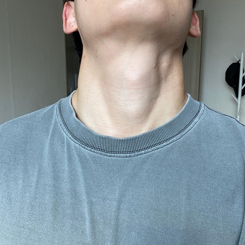 올려주신 사진상 좌측 턱아래 부위의 융기성 병변이 관찰되는데 이러한 경우 종양에 대한 감별이 필요합니다. 상기 부위는 침생이 위치한 부위로 이하선 종양에 대한 평가가 필요하므로 초음파 검사를 시행하여 확인하는 것을 권해드립니다. 만약 이전 진료에서 초음파 등의 검사를 시행하지 않았다면 이러한 검사가 가능한 상급병원 이비인후과 진료를 보시는 것을 고려해 보시기 바랍니다.
