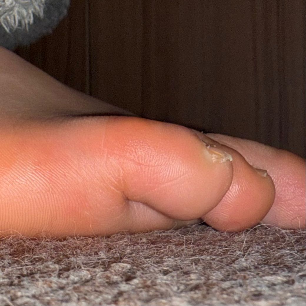 새끼발가락이 걸을 때 땅에 잘 닿지 않고 들리는 것은 대부분 새끼발가락 변형(망치족지/갈퀴족지) 또는 신발 압박으로 인한 자세 변화 때문에 생길 수 있고, 사진에서 보이는 발가락 끝의 각질과 피부가 벗겨진 모습은 무좀이라기보다는 마찰로 생긴 굳은살/티눈(각질) 가능성이 더 높아 보입니다. 다만 발가락 사이 피부가 하얗게 짓무르거나 가렵고 냄새가 나면 발가락 사이 무좀도 같이 있을 수 있습니다. 당장 응급은 아니지만, 통증이 있거나 걸을 때 계속 불편하고 굳은살이 반복된다면 정형외과(족부) 또는 피부과에서 진료를 받아 발가락 변형 여부와 각질(티눈/사마귀) 여부를 확인하는 것이 좋습니다!