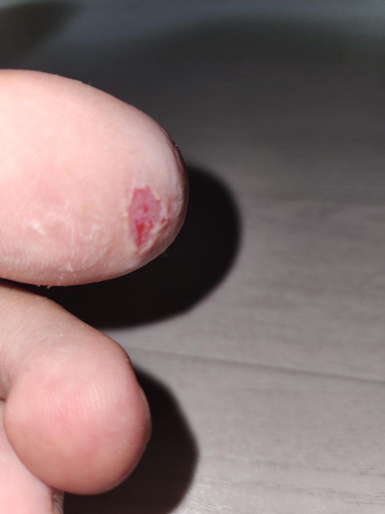 2개월 전에는 이렇게 안 까졌었고 걍 무좀?처럼 작게 살짝 까진 형태였습니다. 점점 까진 부위가 커졌으며 매일 소독약을 바르고 종합 항생제(상처치료제)연고를 발랐는데도 까진 상처가 안 낫습니다. 그렇게까지 심각한 건 아니라고 생각해 병원은 안 갔는데 점점 커지니 병원을 가야하나? 라는 생각이 들어 물어봅니다.