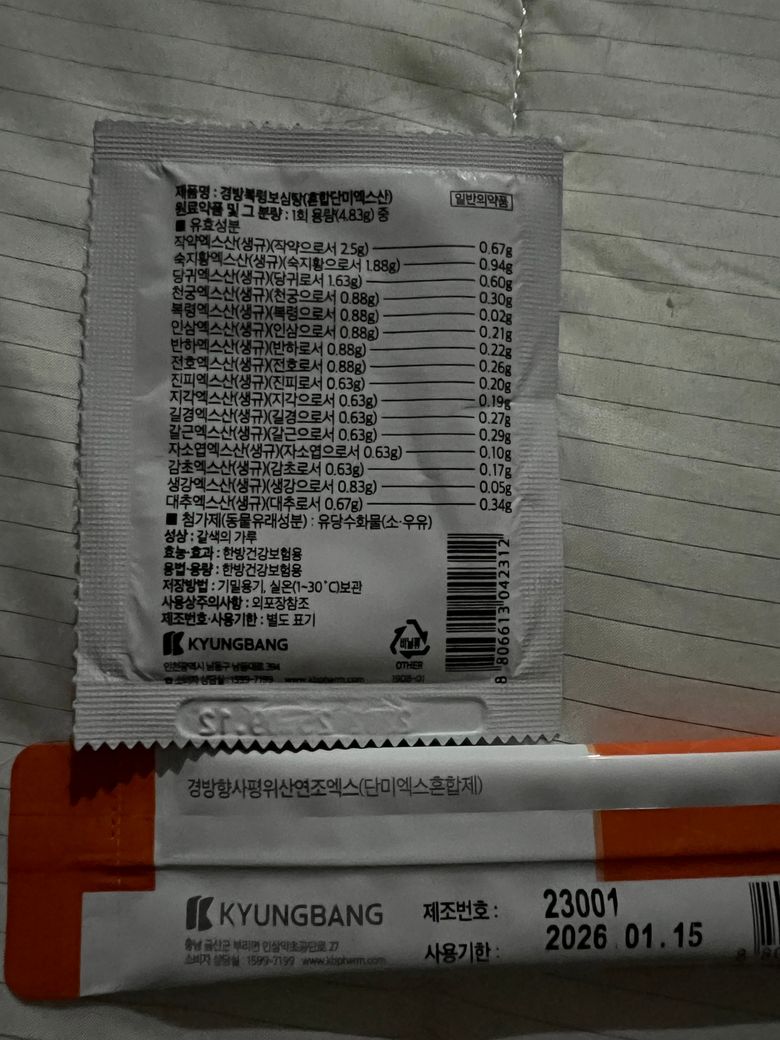 이건 한의원에 물어보셔야할것 같아요.