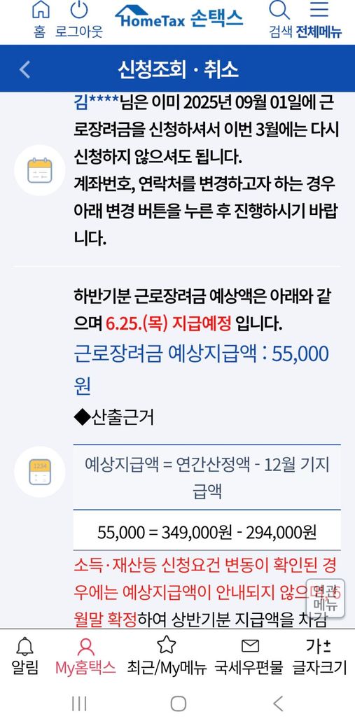근로장려금 하반기요..금액이 이게 맞을까요?