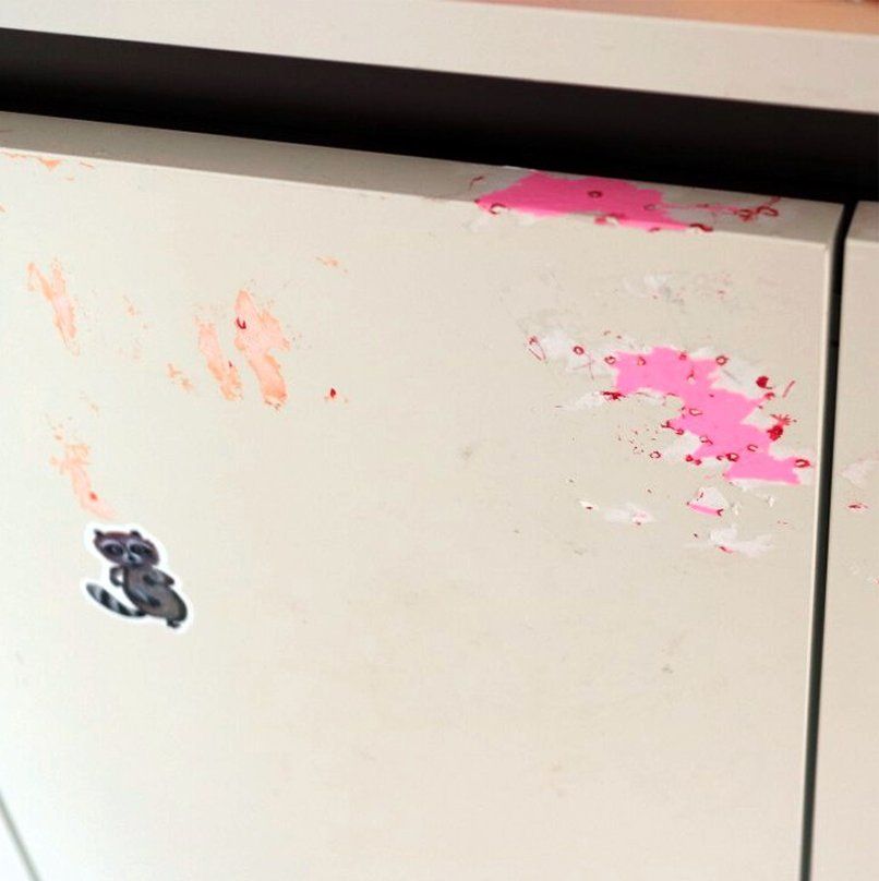 아이들이 신발장에 스티커를 덕지덕지 붙혀놨는데