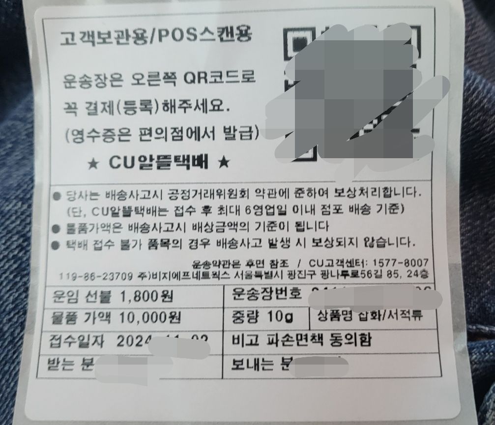 간이사업자고 편의점에서 1800원,3200원인 2개 종류를 사용하며 개인적으로 편의점에서 택배 보내고 있습니다