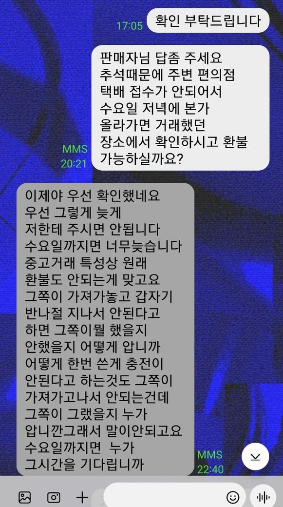 제가 여러가지를 검색해보았습니다. 결국은 판매자가 하자(결함)을 알고 판매를 한 것이냐 아닌것이냐 가 중요한 포인트더군요. 제 개인적인 생각이지만 충전이 되었다가 안되었다가 반복 하는걸 인지한 상태에서 일단 판매를 한거라고 생각이 들더군요. 대화 내용에서도 환불을 순순히 인정하거나 수리를 받으라고 유도를 하는 제스쳐를 취하던데 저는 이를 기망행위라고 판단했습니다.