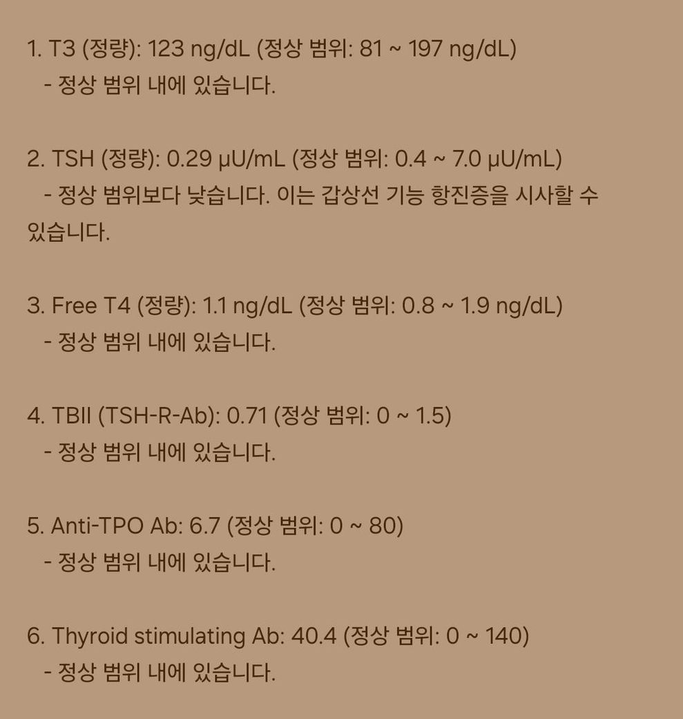 자가항체 그러니까 TSH-R-ab, anti TPO ab, Thyroid stimulating ab 는 모두 정상이네요