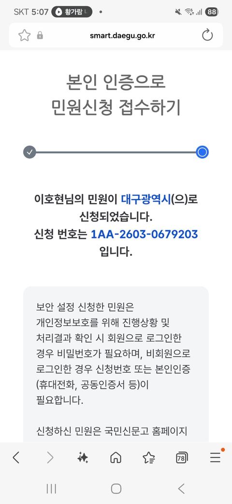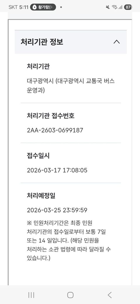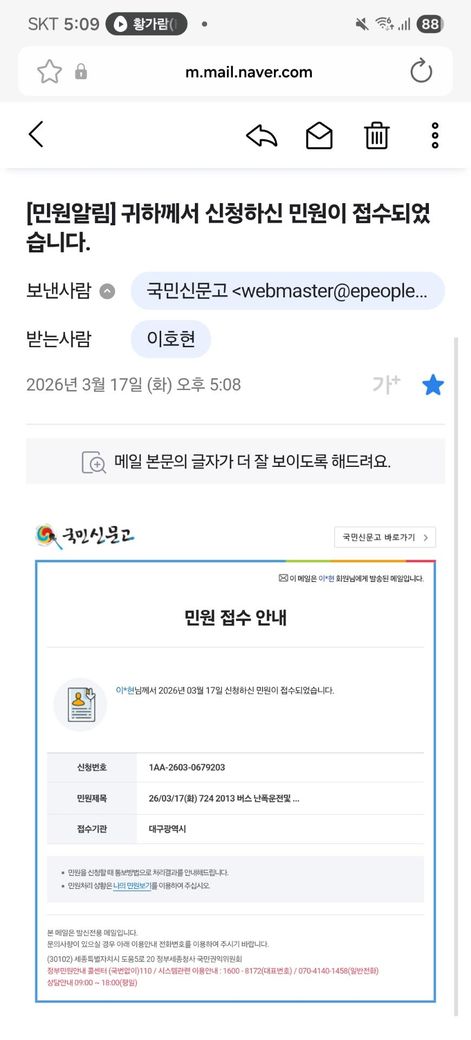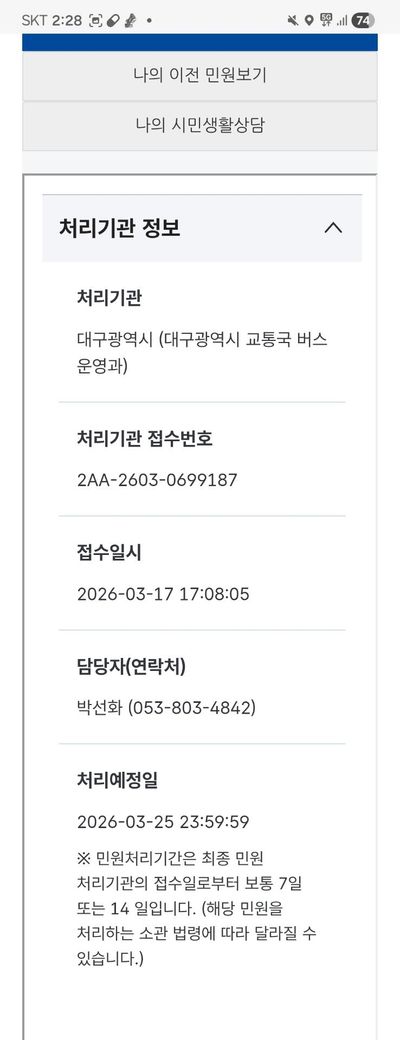 분경 대구시청 버스운영과에서 교통불편신고 접수완료