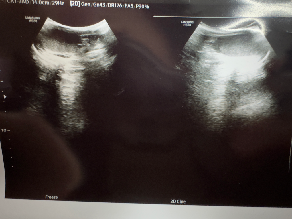 우선 올려주신 초음파 사진은 복부장기를 주로 보는데 쓰이는 convex probe로 시행한 초음파 검사인 것 같네요. (그렇다고 convex probe를 고환을 보는데 쓰면 안되는 건 아닙니다)