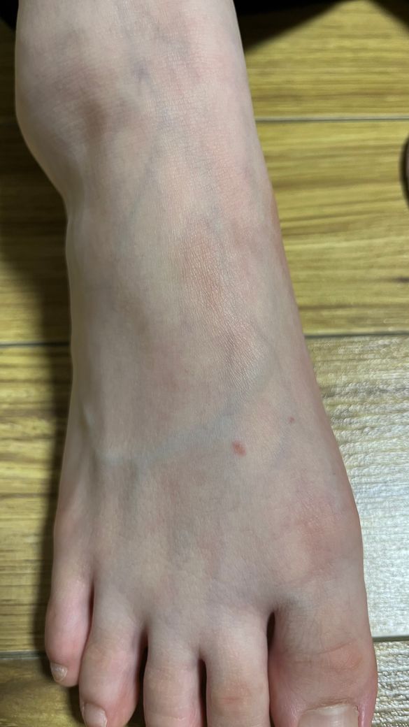 손과 발에 빨간색 염증? 점? 물집?? 뭔지 모르겠어요. 초반에는 가려웠는데 지금 나는 것은 안 가지러워요. 이게 뭘까요?? 피부과에 가야 할까요? 사진은 발등입니다.