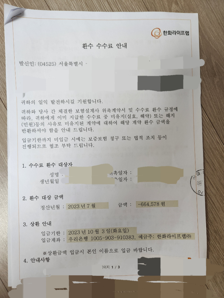 환수금을 전액 지원해준다는 조건으로 보험설계사 일을 했었는데 대리점에서 환수금을 입금하랍니다