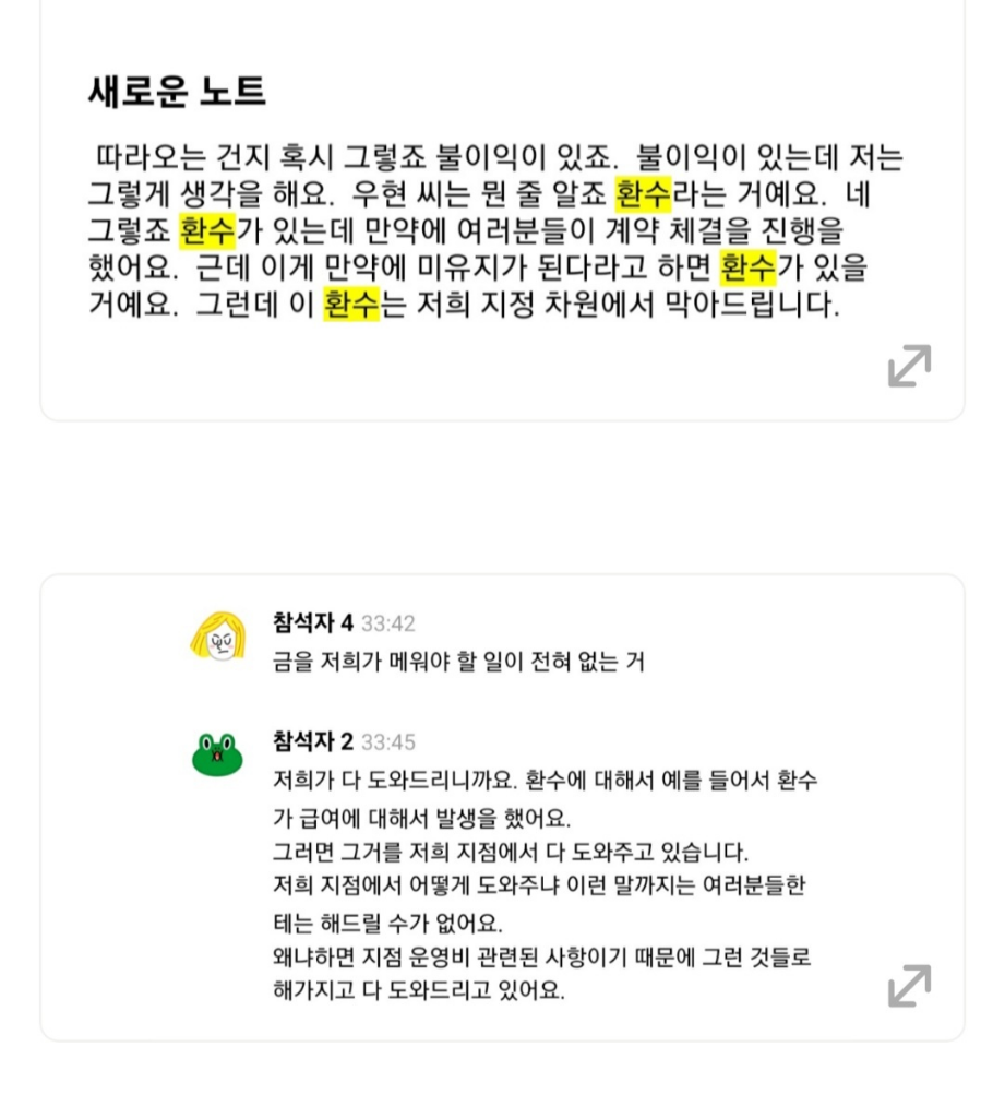 하여 전 당연히 팀장에게 환수금을 지원해달라고 요구했습니다. 근데 방금 팀장으로부터 카톡 답장이 왔는데, 환수금 지원 안 해줄 거라네요.