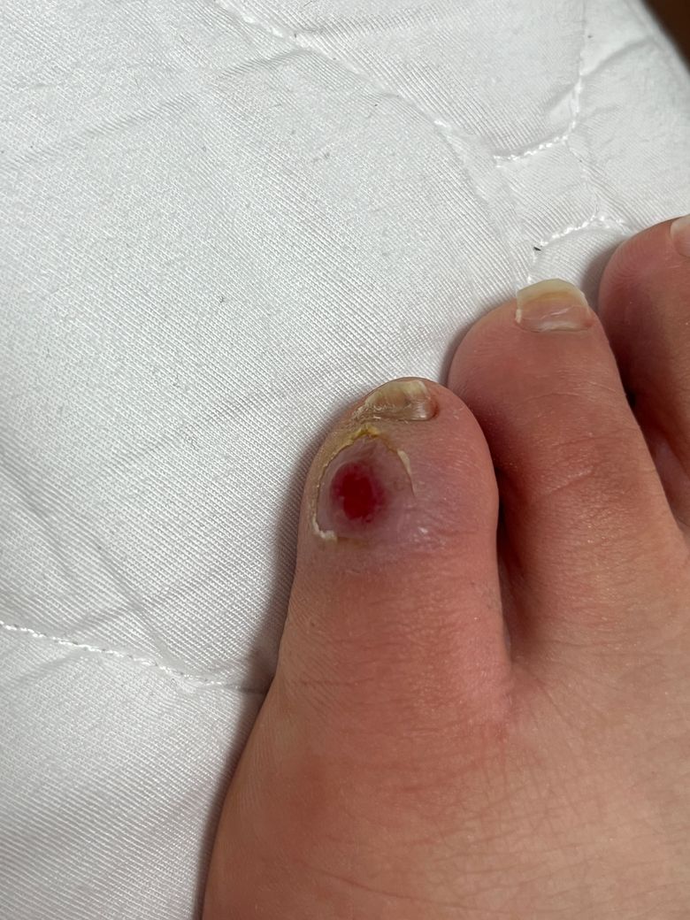일주일 전쯤에 풋살을 하다가 물집이 생기고 터졌어요 하지만 바로 다음날 조기축구가 있어서 밴드 붙이고 또 하였습니다 이후 일주일간 밴드만 붙였다 떼었습니다 지금 상태는 이렇습니다 걸을때 큰 통증읍 없고 눌렀을때나 조금 부었을때 걸을때 신경이 쓰입니다 괜찮은 것일까요?