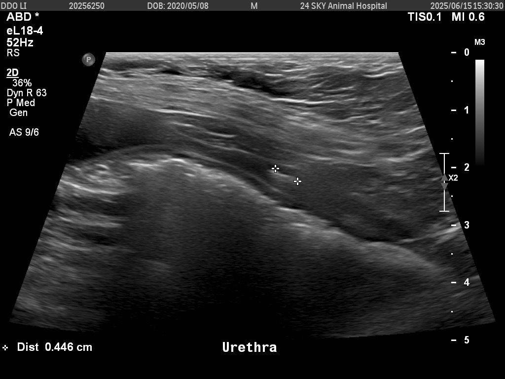 2. 요도 쪽 결석(0.446cm)의 위치가 위험한지, 소변이 막힐 가능성은 없는지 궁금합니다.