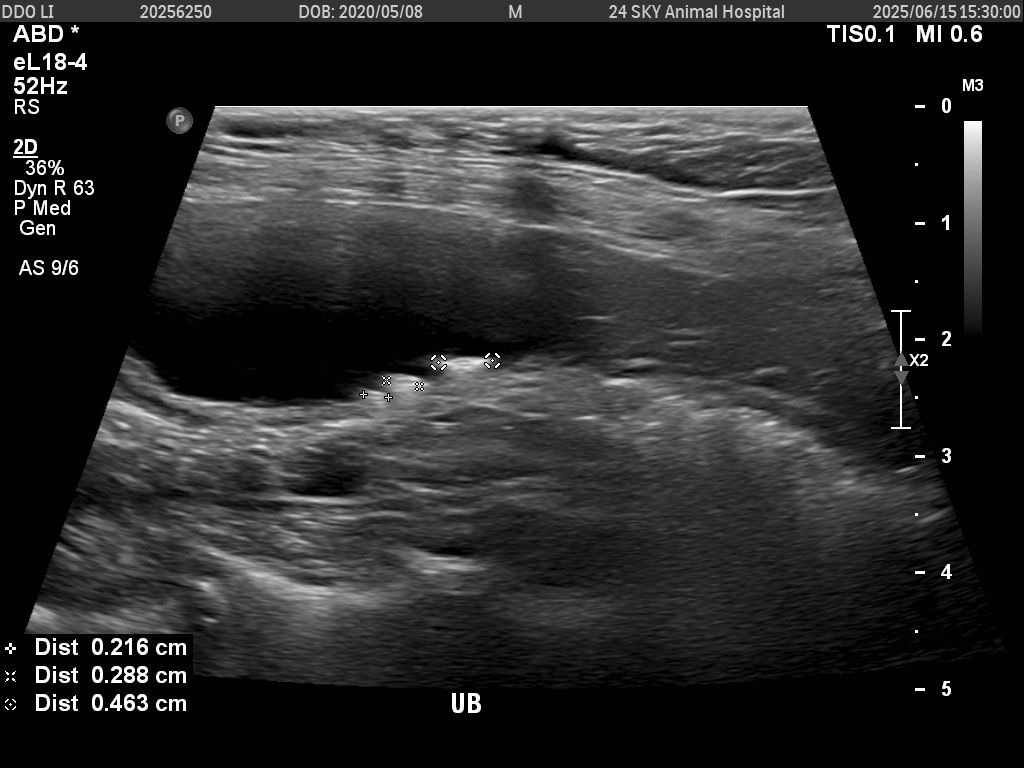 방광 쪽에는 0.216cm, 0.288cm, 0.463cm 크기의 결석 3개가 확인되었다고 들었습니다.