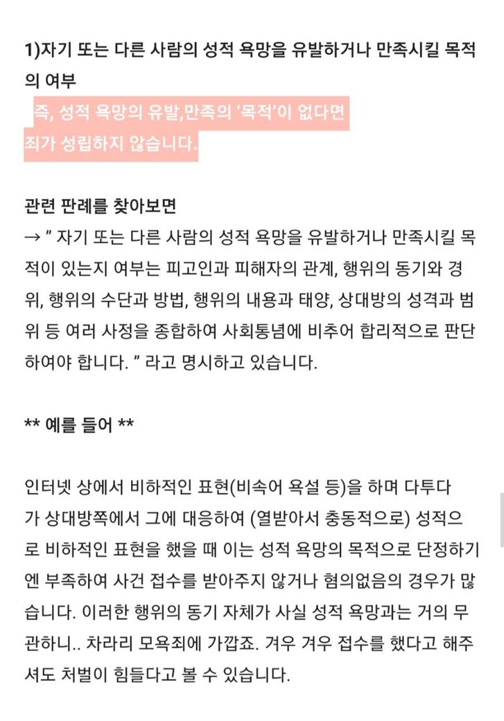 한가지 더 여쭈고 싶은 게 있습니다 만약 저 사진의 예를들어) 내용이 맞다면 제가 "리신 어머니 책상 밑에서 애무중이라 집중못함", 리신 어머니 몸파는 거 불법이라고 말씀드려", "너희 어머니가 몸파는건 자명한 사실인데 왜그래"라고 말한 게 저 성적 욕망의 유발, 만족의 목적이 있다고 판단될까요?
