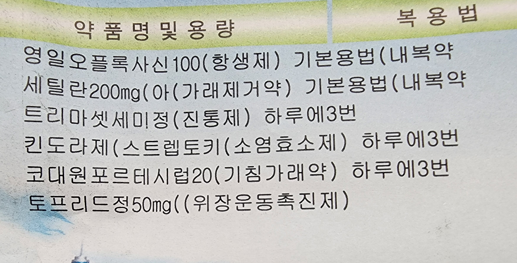 영일오플록사신 / 세틸란 / 트리마셋세미 / 킨도라제 /코대원포르테 / 토프리드