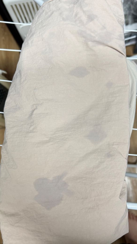 이건 바람막이소재?의 원피슨데 이렇게 됐고 다른 천이 아닌 브라도 물들었어요.. 전부 저런 파란빛 얼룩이에요 이유가 뭐죠 어떻게 해야하나요?ㅠㅠ