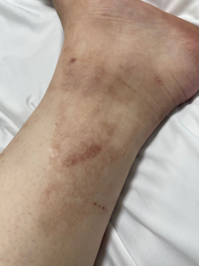 안녕하세요! 27일(목) 밤에 전자레인지에 돌린 컵라면을 꺼내자마자 발에 쏟아서 화상을 입은 뒤에 다음날(금) 피부과에 가서 주사를 맞고 화상연고랑 약을 처방받았고 1도화상인데 혹시 물집이 생기면 치료를 하기로 하고 나왔습니다. 그리고 화요일쯤 물집이 잡혀서 수요일날 병원에 갔는데 제가 코로나에 걸려서 접수를 해주지않아 처음에 갔던 병원을 못가고 다른 피부과에 갔더니 이정도 화상은 치료안한다고 화상보다는 피부염에 가깝다면서 항히스타민제랑 데르민크림을 처방해줘서 발랐습니다. 그리고나서 오늘 자세히 보니 상처부위 전체의 껍질이 일어나고 있는것 같습니다. 지금 상태가 회복중인건지 병원에서 추가적인 치료가 필요한 상태인지 궁금합니다. 사진에 하얗게 보이는게 전부 습진이 생겼을때처럼 피부가 변한것같습니다.. 가운데 붉은 부분은 제일 큰 물집이 터진 곳 입니다. 다시 내원이 필요할까요? 이대로 두면 될까요? 아니면 집에서 더 해야할 처치가 있을까요?