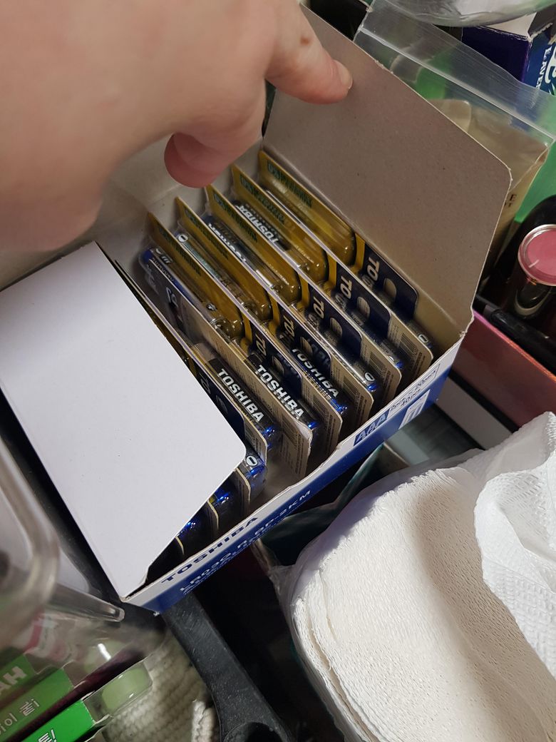 건전지는 원래 포장된 상태로 보관하는 것이 가장 좋습니다. 제조사의 포장이 건전지를 안전하게 보관할 수 있는 조건을 제공합니다. 이를 모두 제거를 하여서 알루미늄에 넣으면 문제가 됩니다. 그러니 포장 그대로 놓길 바랍니다.