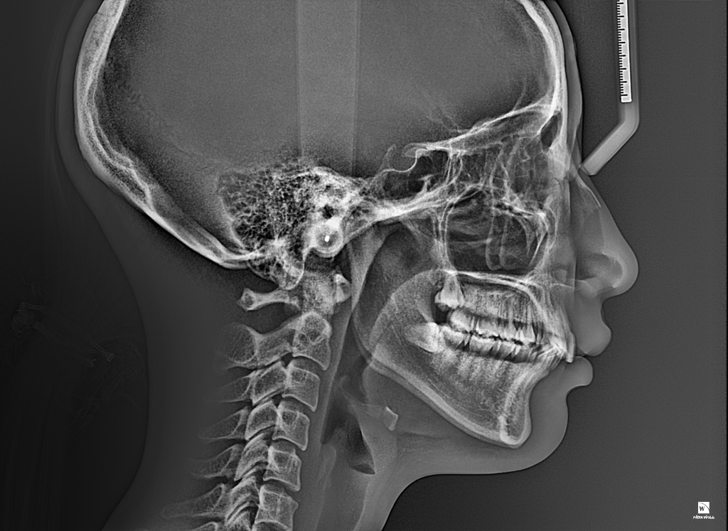 위, 아래 어금니가 맞물리는 상태를 보면 II급 부정교합의 상태이고 위 앞니가 아래 앞니를 정상보다 조금 더 많이 덮고, 더 튀어나온 것 같습니다.