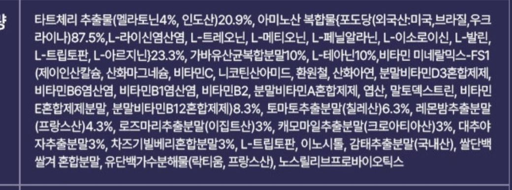타트체리나 캐모마일, 레몬밤, 감태추출물 등등 수면에 도움을 줄 수 있는 성분들이 들어있는 것으로 보아 수면에 방해가 될 정도로 비타민이 들어갔을리는 없어서, 너무 걱정하시지 않아도 될 것 같습니다
