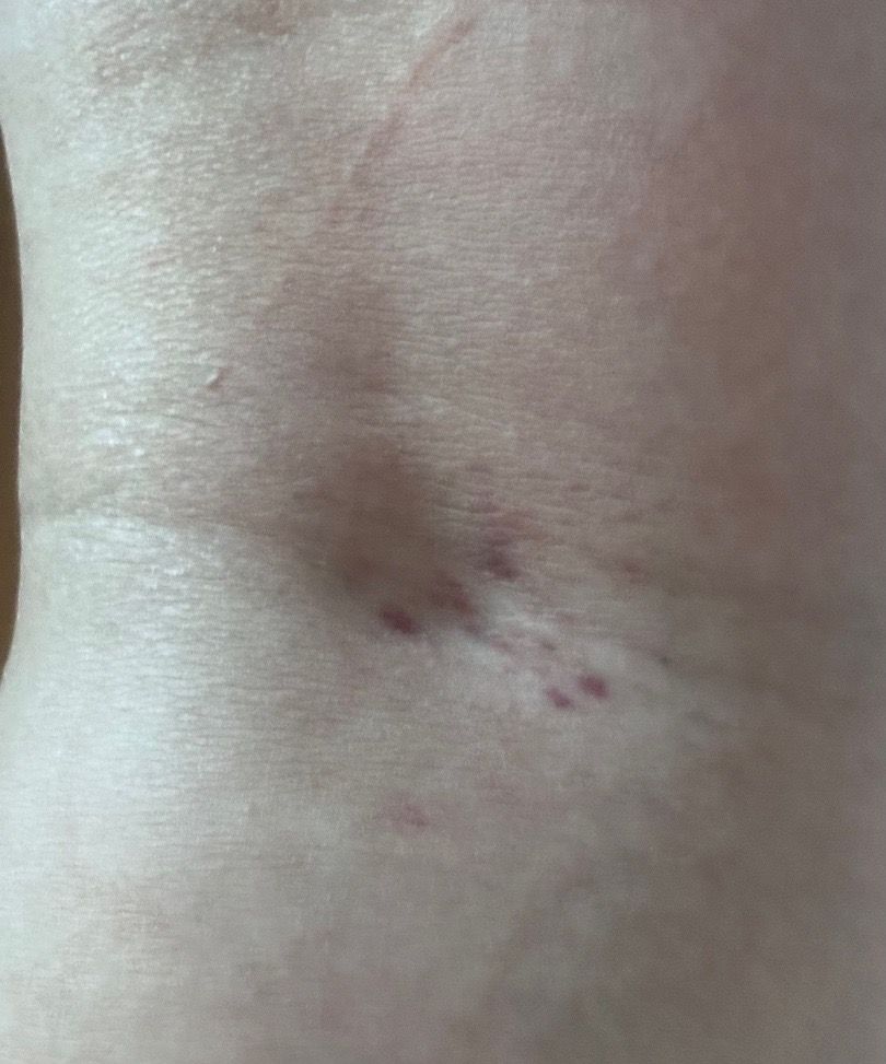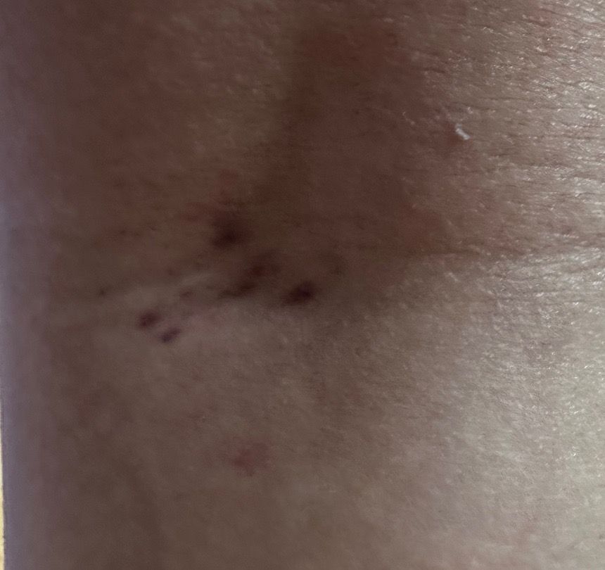 사진상으로는 작은 “점상 출혈(모세혈관이 터진 자국)“ 처럼