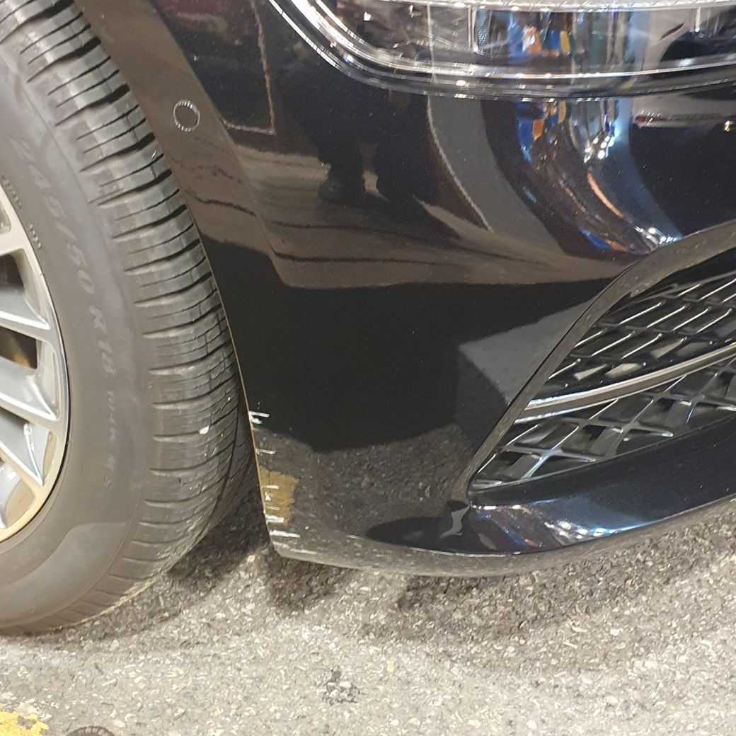 그런데 제네시스 차량이 갑자기 돌진해서는 발판을 치고 발판이 튀면서 차량에 기스가 났습니다.