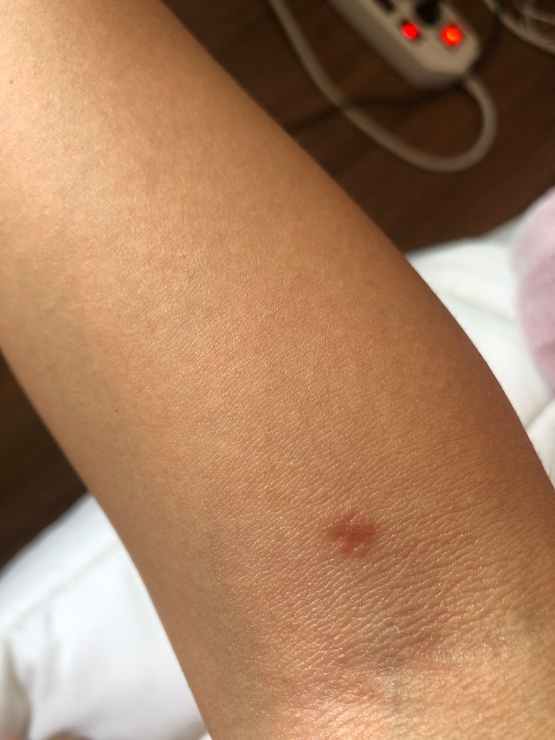 사진의 소견만으로는 사진 속의 피부 병변이 무엇인지 정확하게 파악하기는 어렵습니다. 단순히 벌레에 물려서 나타난 병변일 수도 있지만 다른 피부과적 컨디션이 있을 수도 있습니다. 증상이 있는 만큼 피부과에서 관련하여 검진을 받아보시는 것을 권고드립니다.