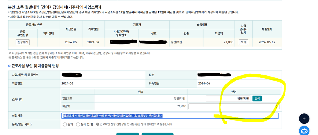 여기서 궁금한게 변경에 업종코드 방판/외판 넣고 0원을입력해야할까요