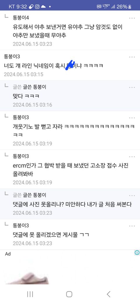 혹시 상대방이 미성년자라면 불리해 질 수 있는데 디씨인사이드에서 같은 사람에게 당한 사례가 있었습니다.