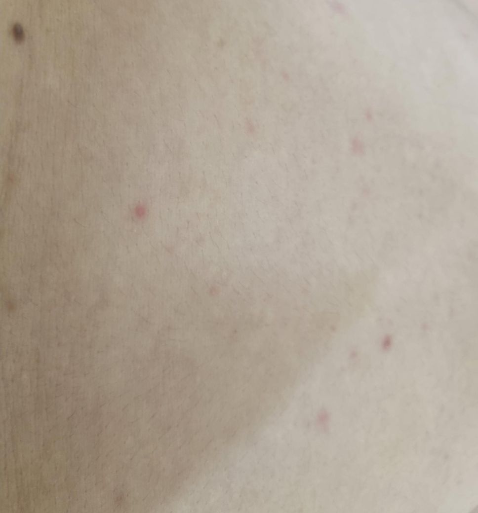 의심스런 관계를 한지는 10주정도 지났고, 3주차 정도에 std검사를 했을때는 성병은 아닌 균 2개만 검출되었어서 항생제 처방받고 일주일동안 복용하였습니다. 오늘 확인하니 배쪽에만 저런 두드러기들이 나있고, 성기도 약간 궤양인지 모낭염인지 모르는 게 하나 나있어서 걱정이 되네요.. 손이나 발바닥에 두드러기 같은 증상은 없습니다. 혹시 매독 2기의 증상인지, 아니면 에이즈 증상인지 아닌지 알려주시면 감사드리겠습니다. 아니면 단순한 상처인지도 질문드립니다