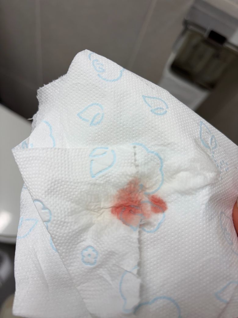 소변검사에서 혈뇨가 없었다는 것은 검사 시점에 미세혈뇨가 없었다는 의미일 뿐, 배뇨 직후 휴지에 묻는 선홍색 혈액은 요도 말단부 병변일 가능성이 있습니다. 요검사는 증상 발생 직후 시행하는 것이 진단율을 높입니다.