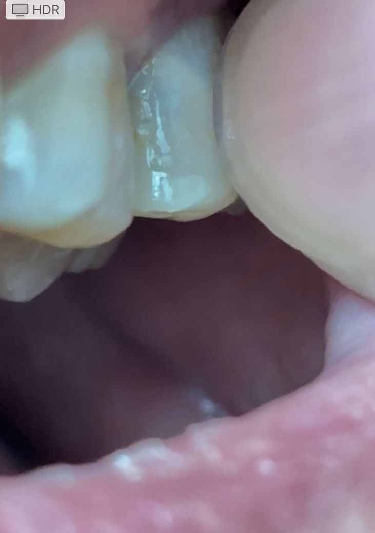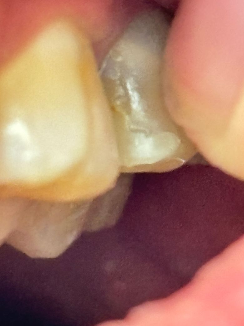 이번주에 충치 치료받으러 갈 예정인데 크랙인가요?손톱으로 긁으면 약간의 틈이 느껴집니다. 통증이나 시림 등 불편함은 느껴지지 않습니다