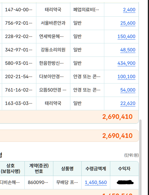 이경우 제 의료비내역에뜨는게맞는건지 궁금합니다.