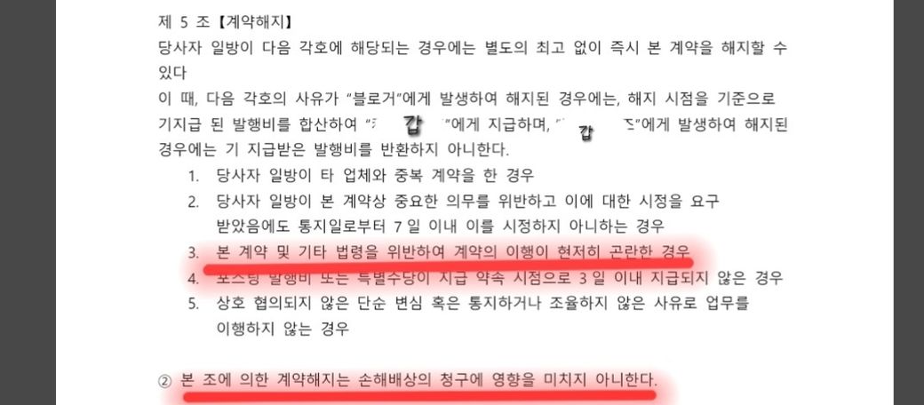 게시글을 거부또는 교체할 권리도 따로 명시된바가 없구요. 불리한 계약일까요?