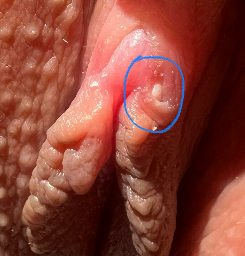 음핵 주름 속?에 하얀 피지가 들어있었습니다.