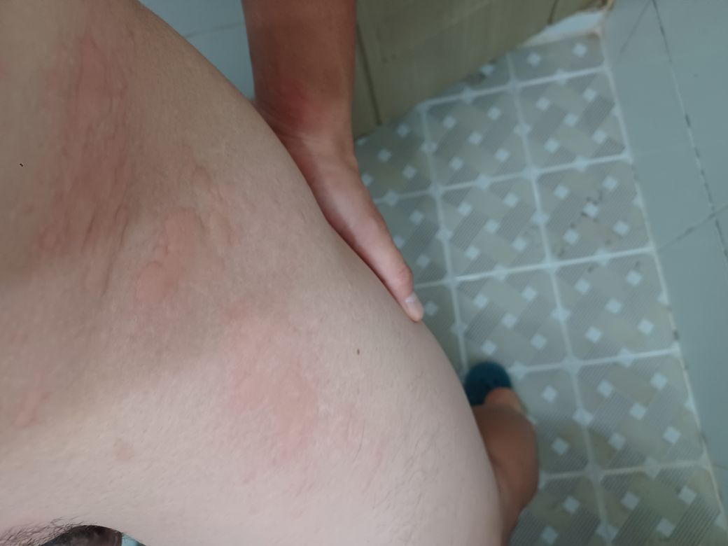종아리 상태가 호전되면서 저녁마다 붉은 반점이 생기고 또 자고 일어나면 없어집니다. 이 증상을 3일째 반복했습니다. 그리고 굉장히 가렵습니다.